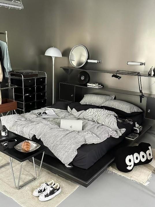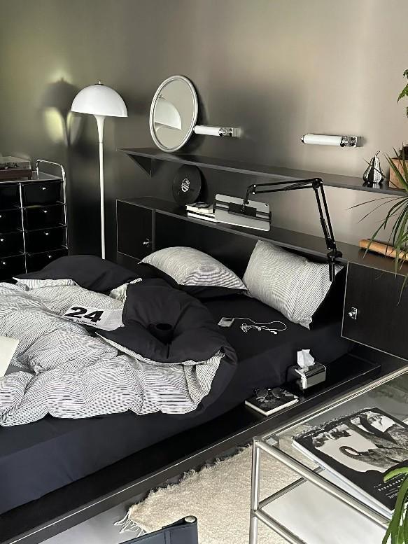 不锈钢床,床头和床尾不锈钢作为装饰件的同时,也起到支撑的作用,圆润的造型,也不会给人生硬感。