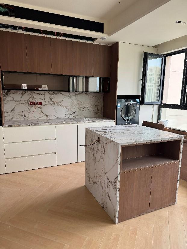 岩板,要做台面必须防裂,得做顶板加固。而花岗岩的硬度、耐腐蚀性能与岩板打平,价格却比岩板便宜的多。如果我们不想要岩板,完全可以花点功夫,去找找好看的花岗岩。